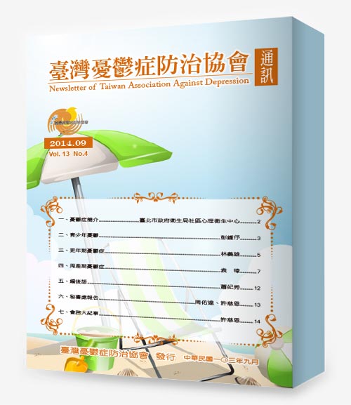 一、基層醫療中老年人不可忽視的隱藏疾病~憂鬱症-陳怡吟 二、如何陪伴憂鬱症的親人-范庭瑋 三、喪女之慟-唐心北 四、大家健康雜誌 憂鬱症新知-董氏基金會心理衛生組 五、編後語-唐心北